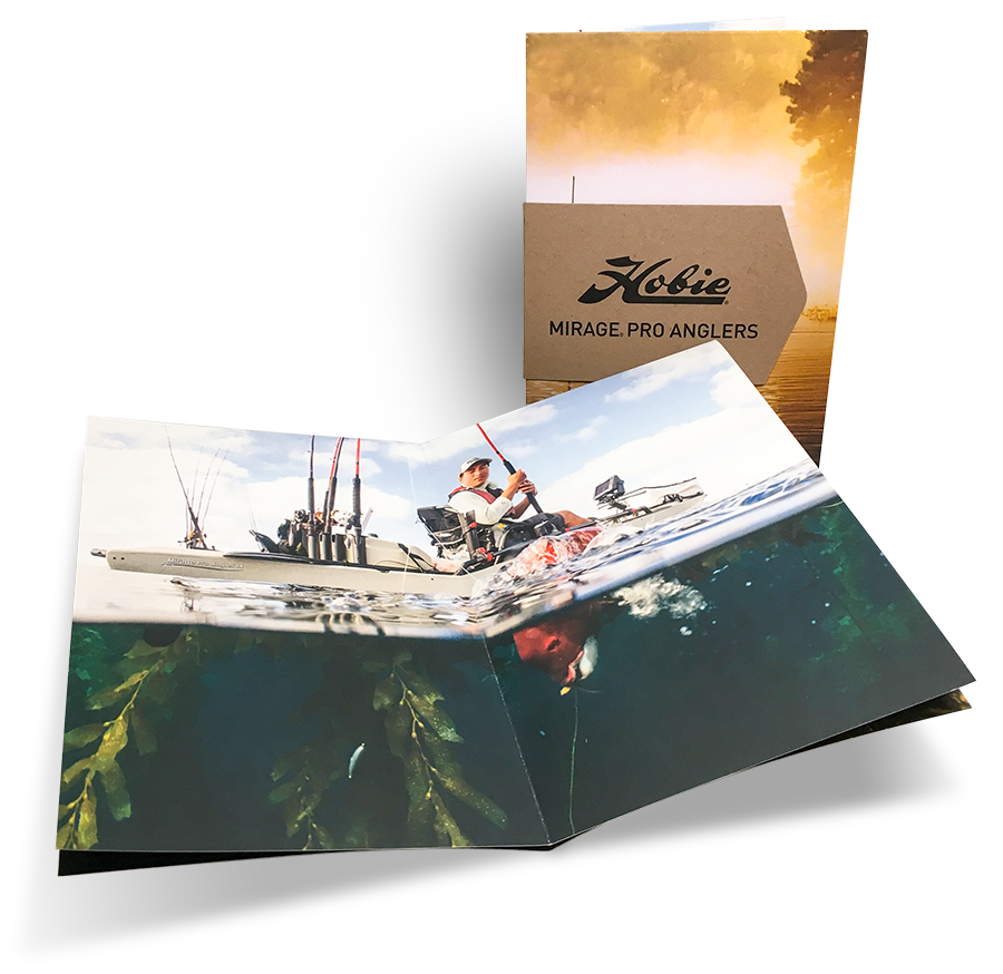 Designing print pieces that leave a strong impression is so important with the onslaught of web-based branding. Hobie has products that are getting people’s attention, so anything less than a really cool print piece is not going to cut it. SDA designed and printed these four lifestyle pieces that come in every owner’s packet. It’s not a tool to sell… you have to purchase the product to get one. It’s just a stylin’ clean fold-out brochure with a soft touch varnish, that makes you feel good about the purchase you just made. It’s the kind of piece you just don’t throw away, you keep it and show it to your friends and family.