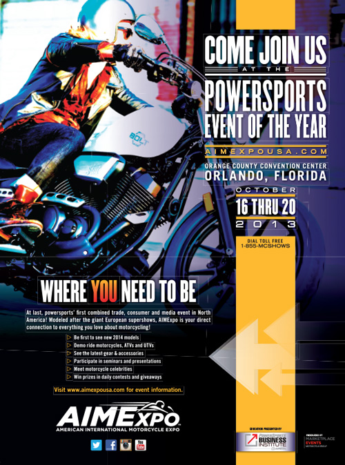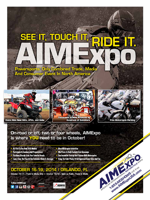 Creating trade show marketing is tougher than most, basically because you have to be all things to all people. What might resonate to a certain demographic can fall on deaf ears to another. Working with the folks at AIMExpo has been very rewarding — they inspire and educate. This group lives and breathes all things motorcycle related, and the combination of knowledge and passion that they’re able to pass on to SDA creates a solid marketing partnership. Now in year two, SDA is helping dial-in the vision and message of this truly one-of-a-kind trade show, and enjoying the ride.