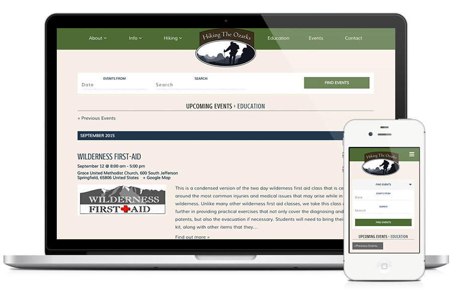 SDA Creative collaborated with Dan Nash, founder and CEO of Hiking the Ozarks, to develop an updated website that not only would work with today’s technology, but could also be updated on a daily basis. We created a custom, responsive WordPress website that could be updated from anywhere our client had internet access. With the added registration functionality, their clients could now sign up for events and classes using the website registration form in lieu of other non-branded registry outlets. Adding social media feeds, as well as photo and video galleries, for our client’s numerous hiking reviews, allows users to get pertinent information in one location. Make sure to visit Hiking the Ozarks the next time you decide to head outdoors exploring or backcountry camping.