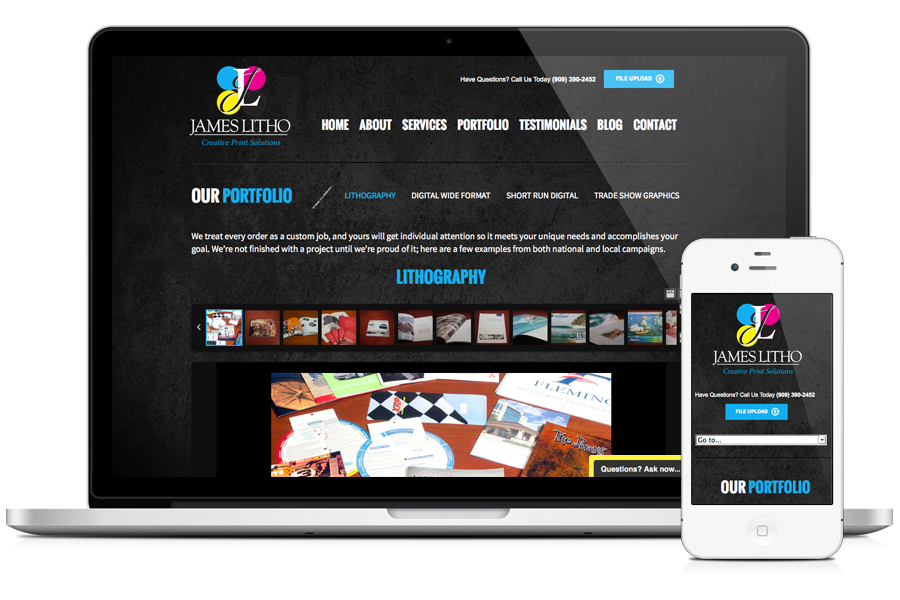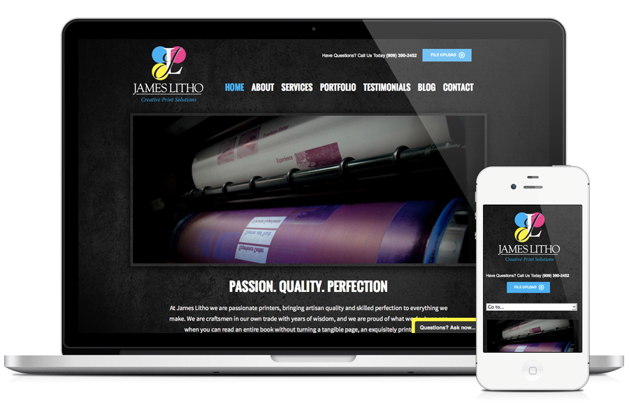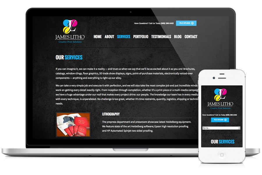 If you are looking for experienced, professional printers look no further than James Litho. When you combine the latest equipment and digital machinery with decades of experience and incredible attention to personal service, you get a company that will never let you down. The website utilizes WordPress as a CMS (content management system) which gives their employees access to update the website without having to call us. Being a printer who constantly receives large files, James Litho needed a simplistic file upload solution that didn’t require a FTP program or password. The next time you are looking for a powerful printed piece that demands quality and attention to detail call James Litho.