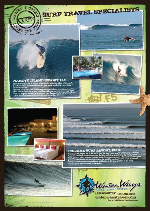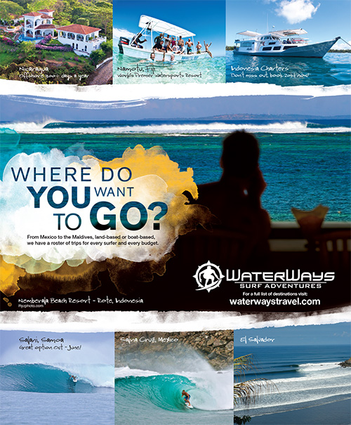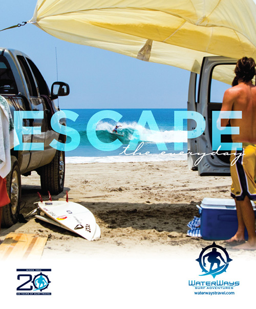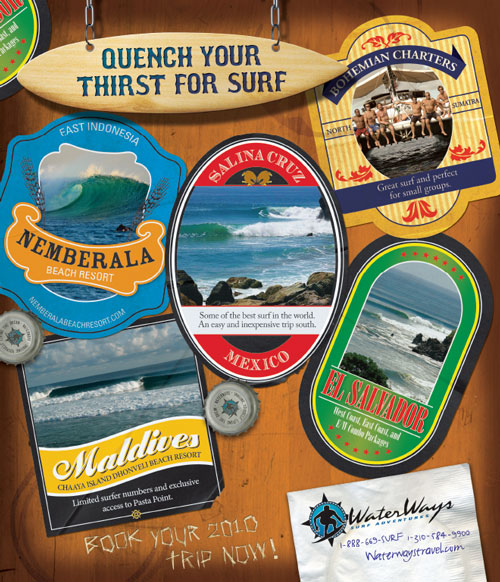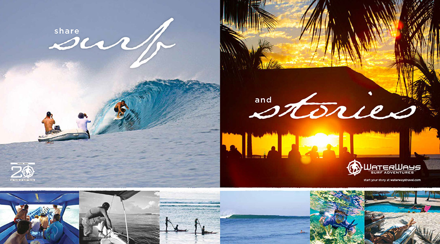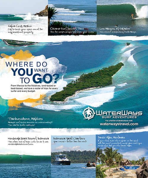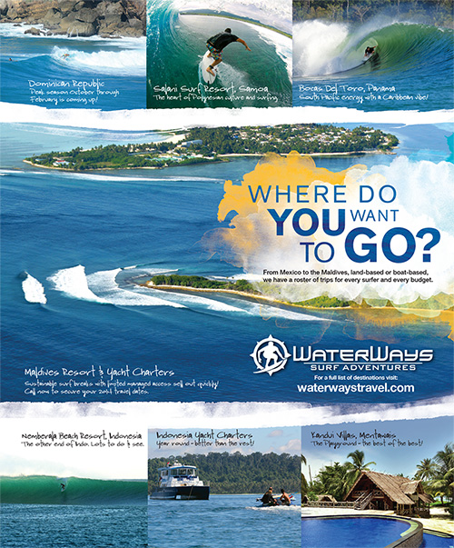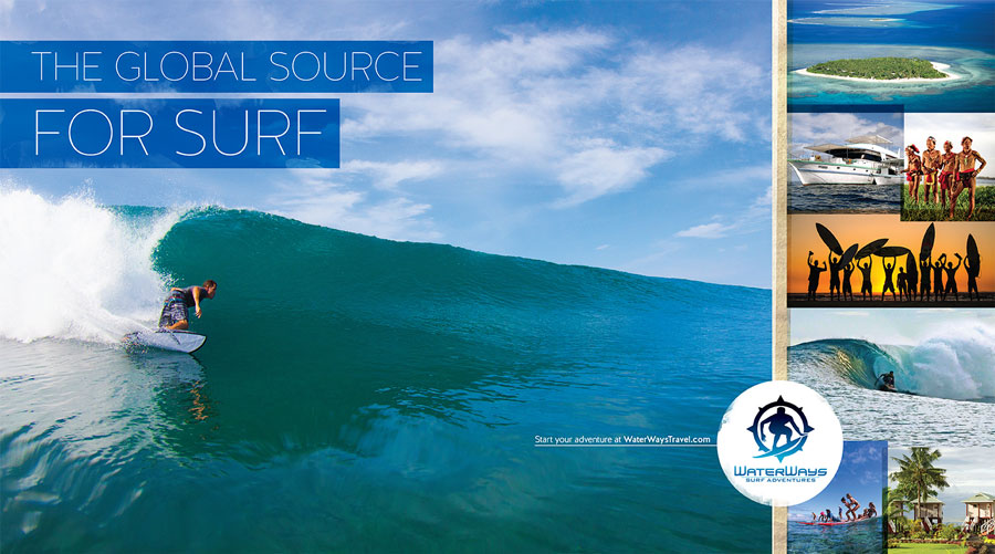 When you design creative for a company for over 10 years, keeping it fresh is at the top of the list. Waterways Travel is the undisputed champion in hooking surfers up with their dream destinations worldwide. Globe-hopping surfers can be the most discerning customers out there, your message better be legit and your images compelling. Combining photography with just enough design nuance and copy keeps ’em on the page every time. Waterways and SDA have kept it real for a very long time, and the Waterways brand has never been stronger. So… where do you want to go?